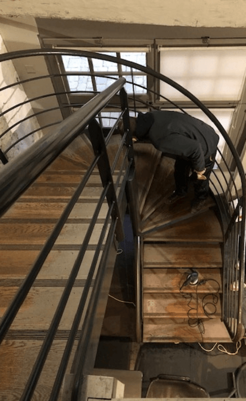 REFECTION ESCALIER ET PARQUET RESTO VITRÉ