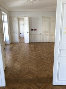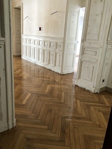Rabottage,ponçage,polissage et vitrification en 3 couches vernis acrylique satiné.